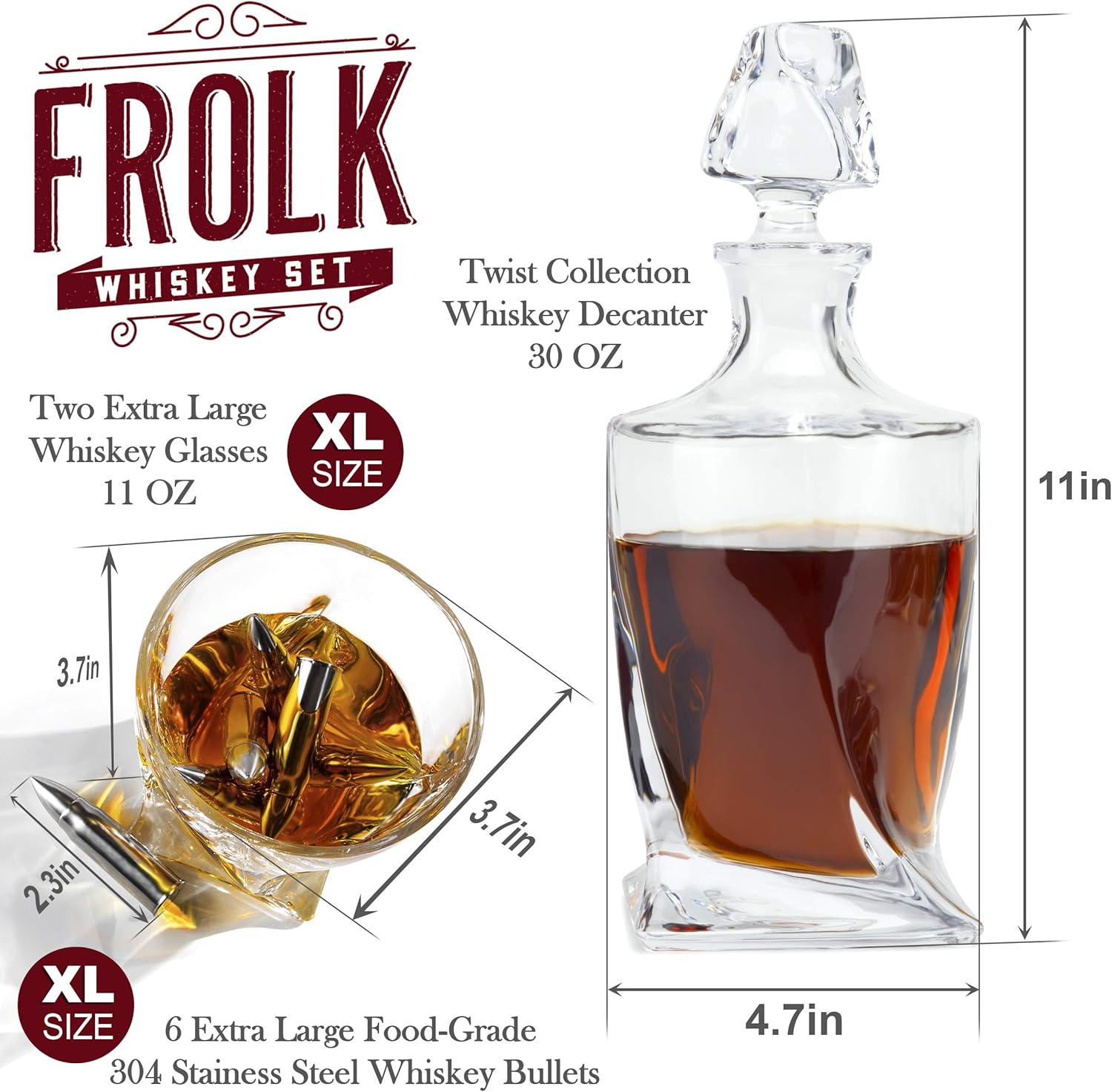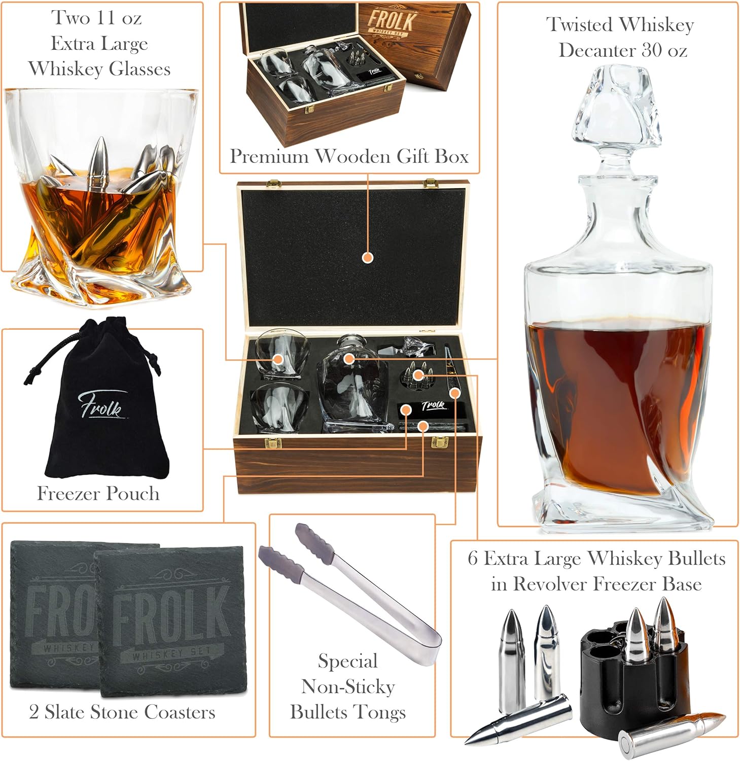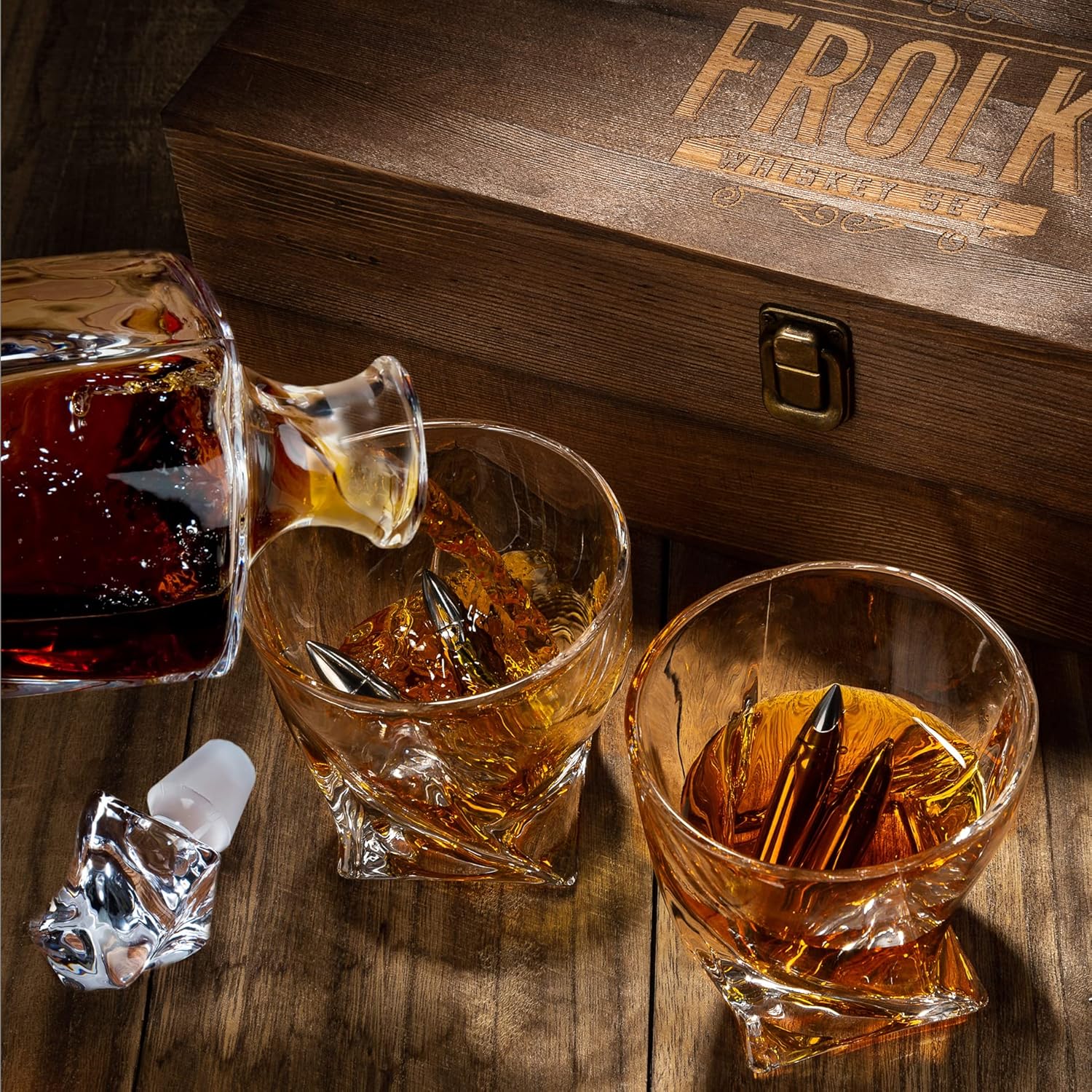 Frolk Whiskey Decanter & Stones Gift Set – XL Bullets