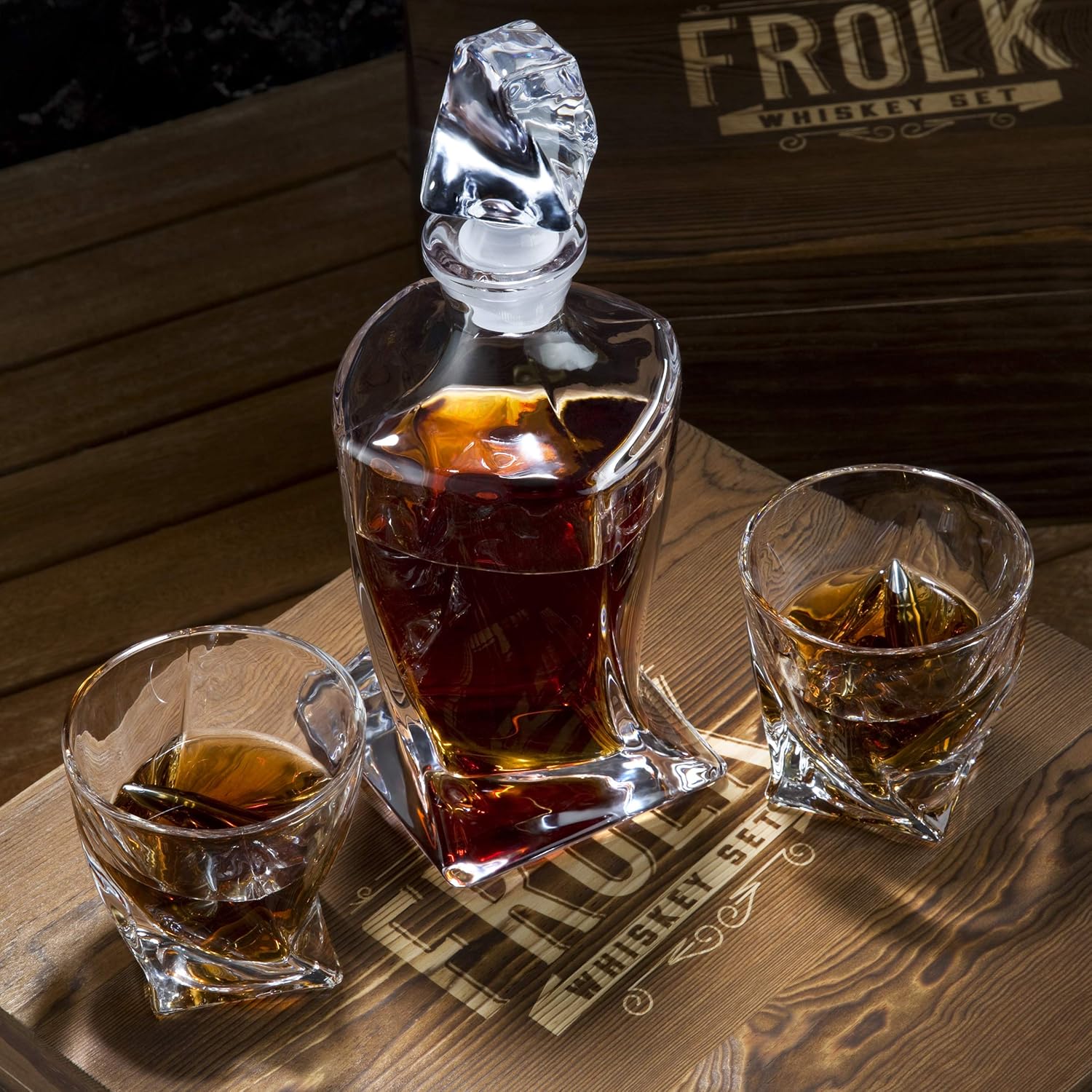 Designed with both function and elegance in mind, the Frolk Whiskey Gift Set is the ultimate expression of refined taste. Whether you’re sipping bourbon by the fireplace or looking for a show-stopping gift for someone special, this set has everything you need. Each item is crafted with precision — from the lead-free crystal decanter and glasses to the food-grade stainless steel chilling bullets that cool your drink without watering it down.