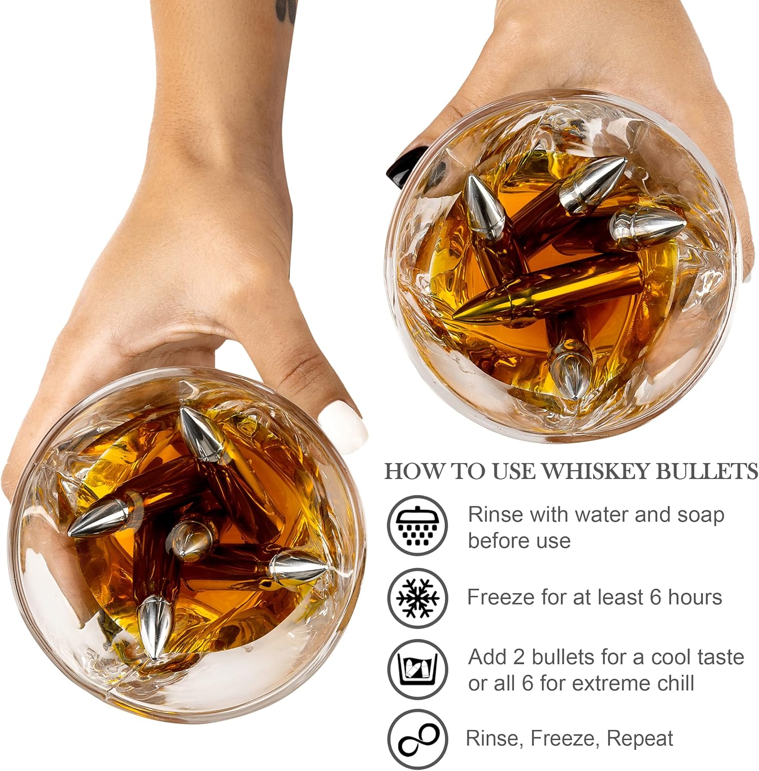 XL Stainless Steel Whiskey Bullets (6): Chill drinks without dilution — for the full-bodied flavor every time.