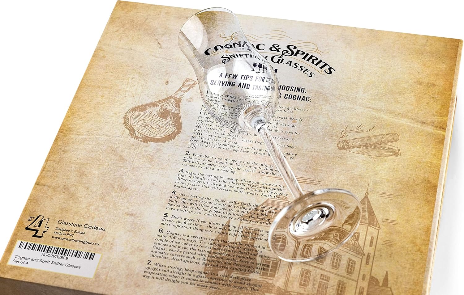 | Included Components | 4 x Snifter Glasses, Gift/Storage Box |