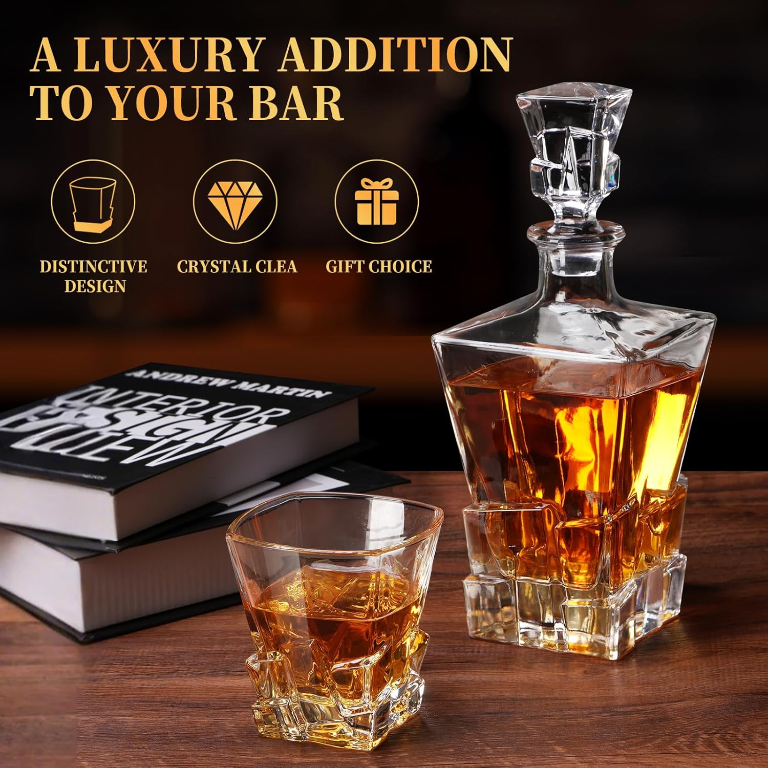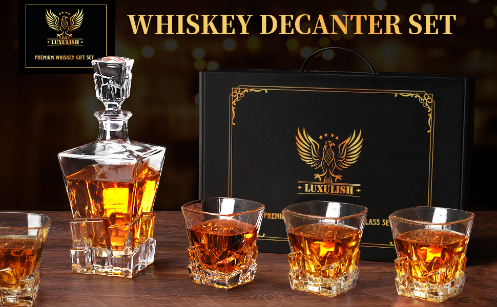 LUXULISH Whiskey Decanter Set with 4 Crystal Glasses