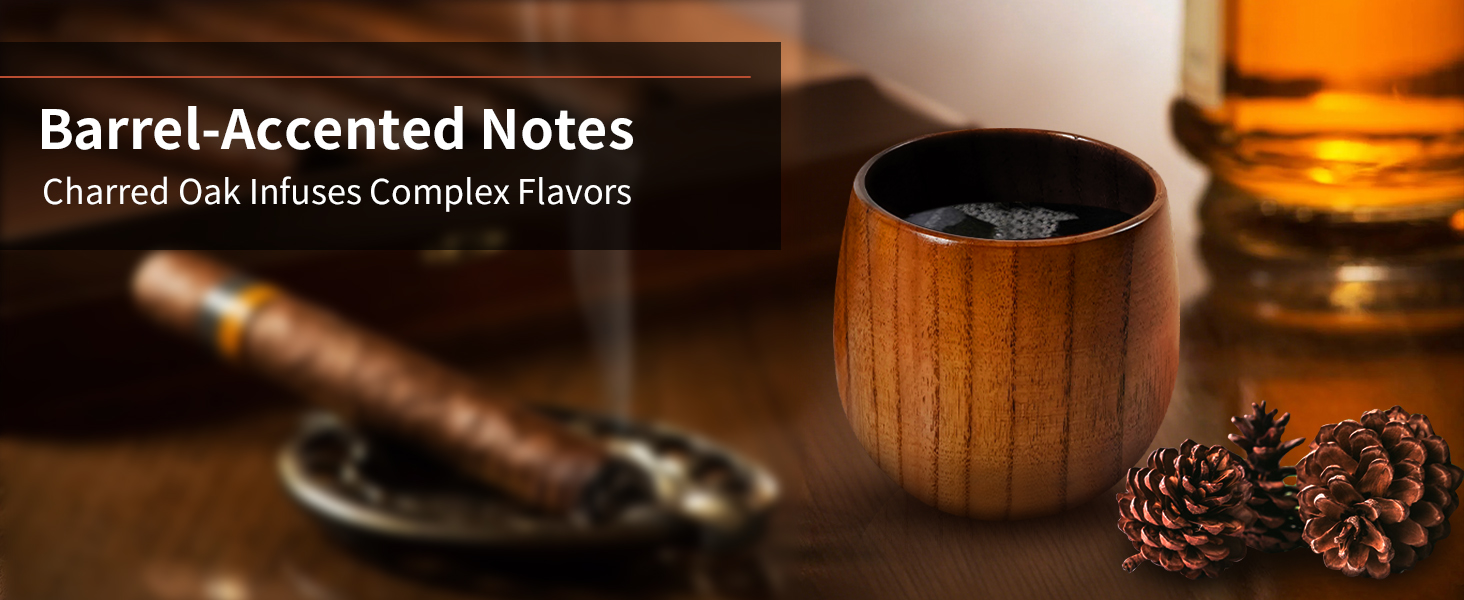 Echoes the flavor and aroma of barrel-aged bourbon with a smoky touch of class. -