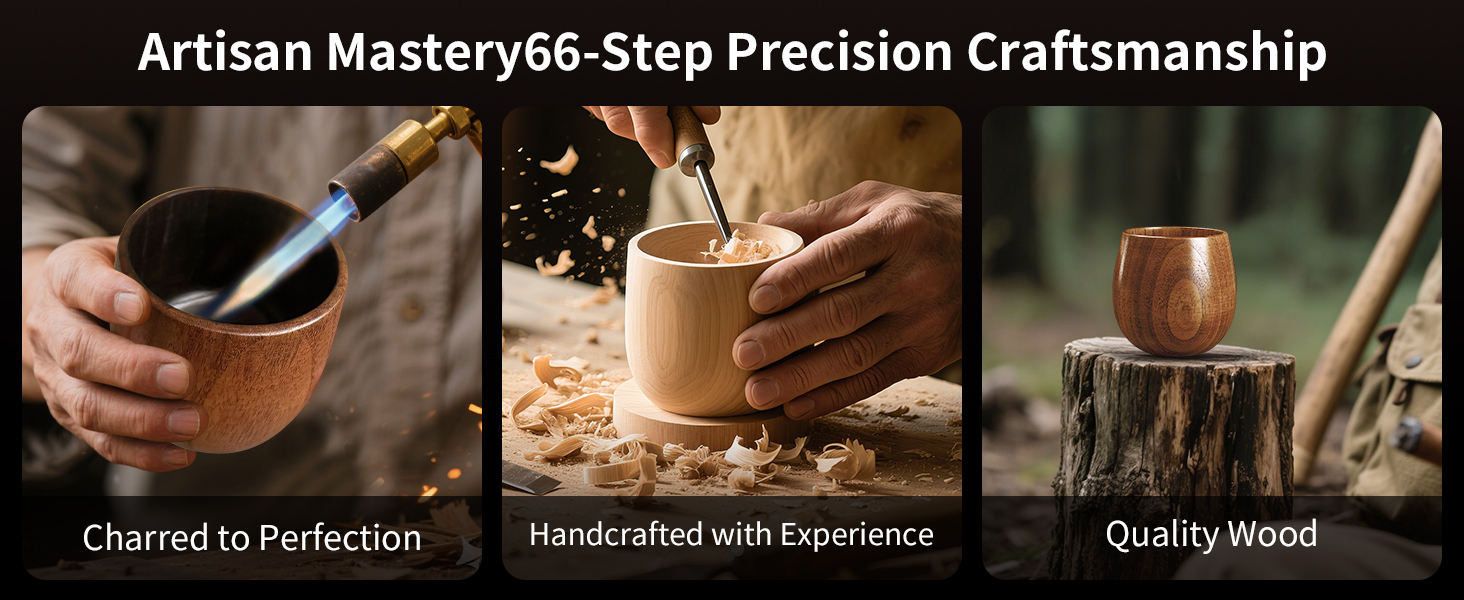 Each glass is carved from real wood, showcasing unique grain patterns for a one-of-a-kind feel. -