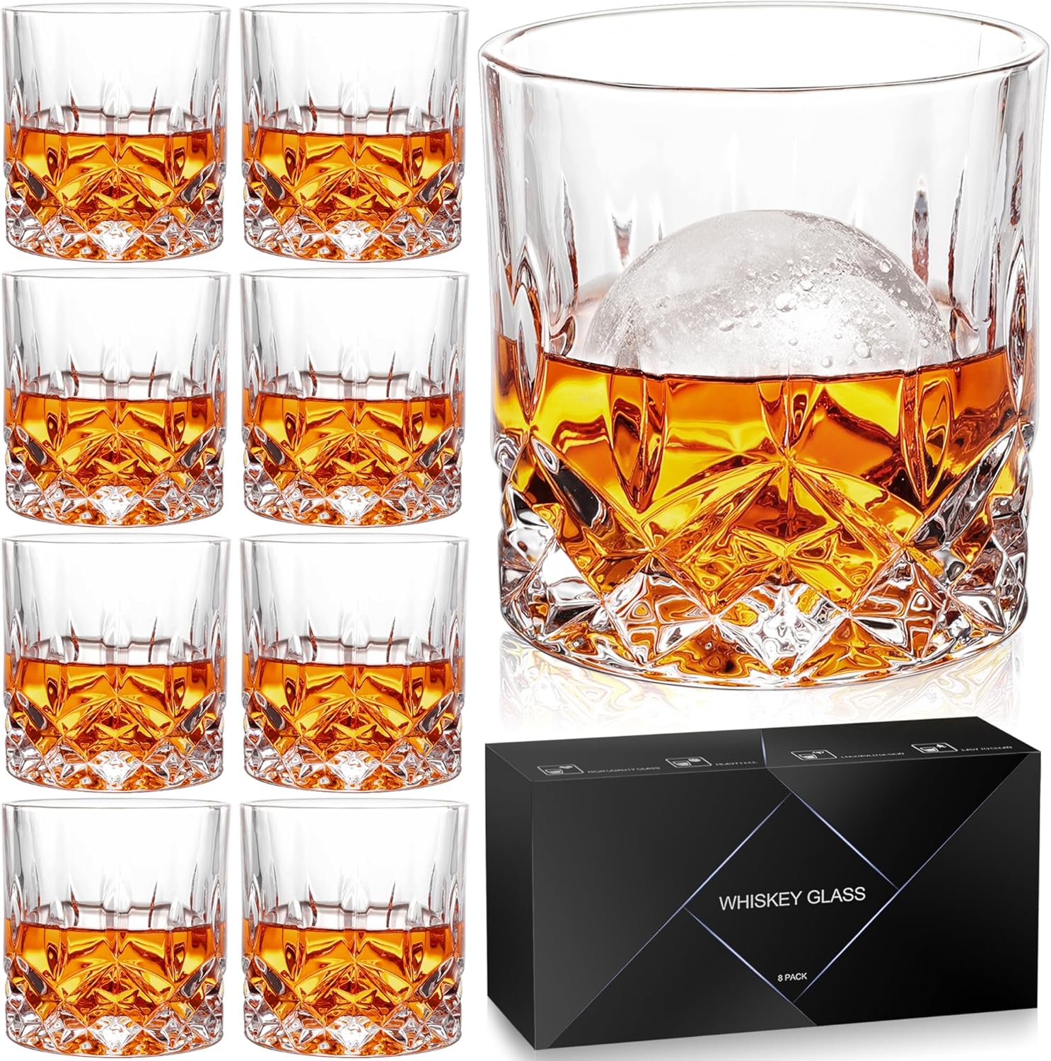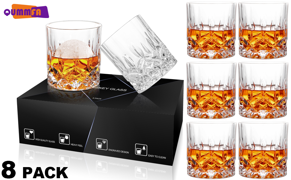 QUMMFA Whiskey Glasses Set of 8 – Elegant Crystal Old Fashioned Glassware