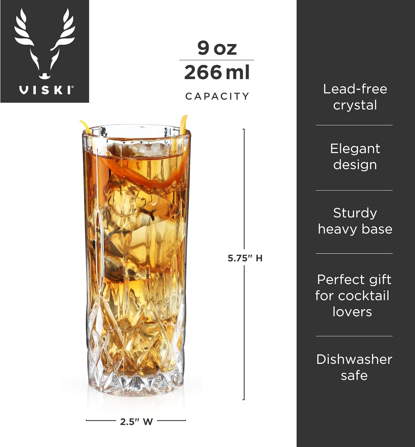 Viski Admiral Highball Glasses – Set of 4 (9 oz)